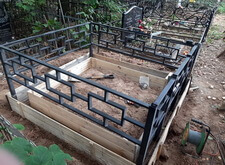 Клиент заказал у нас комплексное оформление места захоронения, в которое входят: классический горизонтальный памятник из чёрного гранита с прямоугольным цветником, простая металлическая оградка, а также наземное покрытие места захоронения гранитной брусчаткой. В первый наш приезд на кладбище могила выглядела следующим образом: два деревянных крестика и простое ограждение.