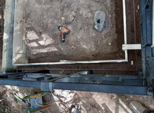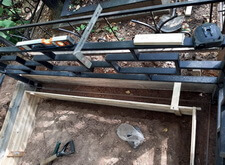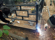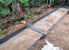 Параллельно с этим ведутся сварочные работы: к основанию оградки в стык к бетонному фундаменту привариваем борта для брусчатки.