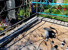 Затем мы засыпали место захоронения грунтом и пескобетонной смесью, тем самым приподняв участок. Все работы были произведены точно по уровню, так что возможность появления холмов или впадин была исключена.